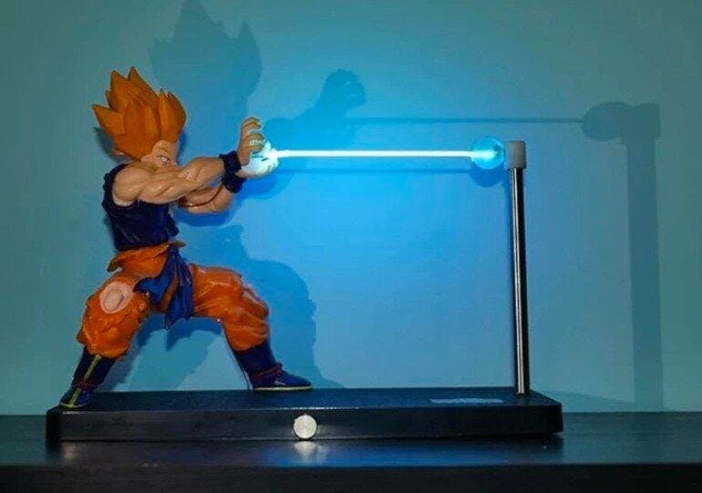 It glows with an electric-blue hue, mimicking Goku’s iconic attack.